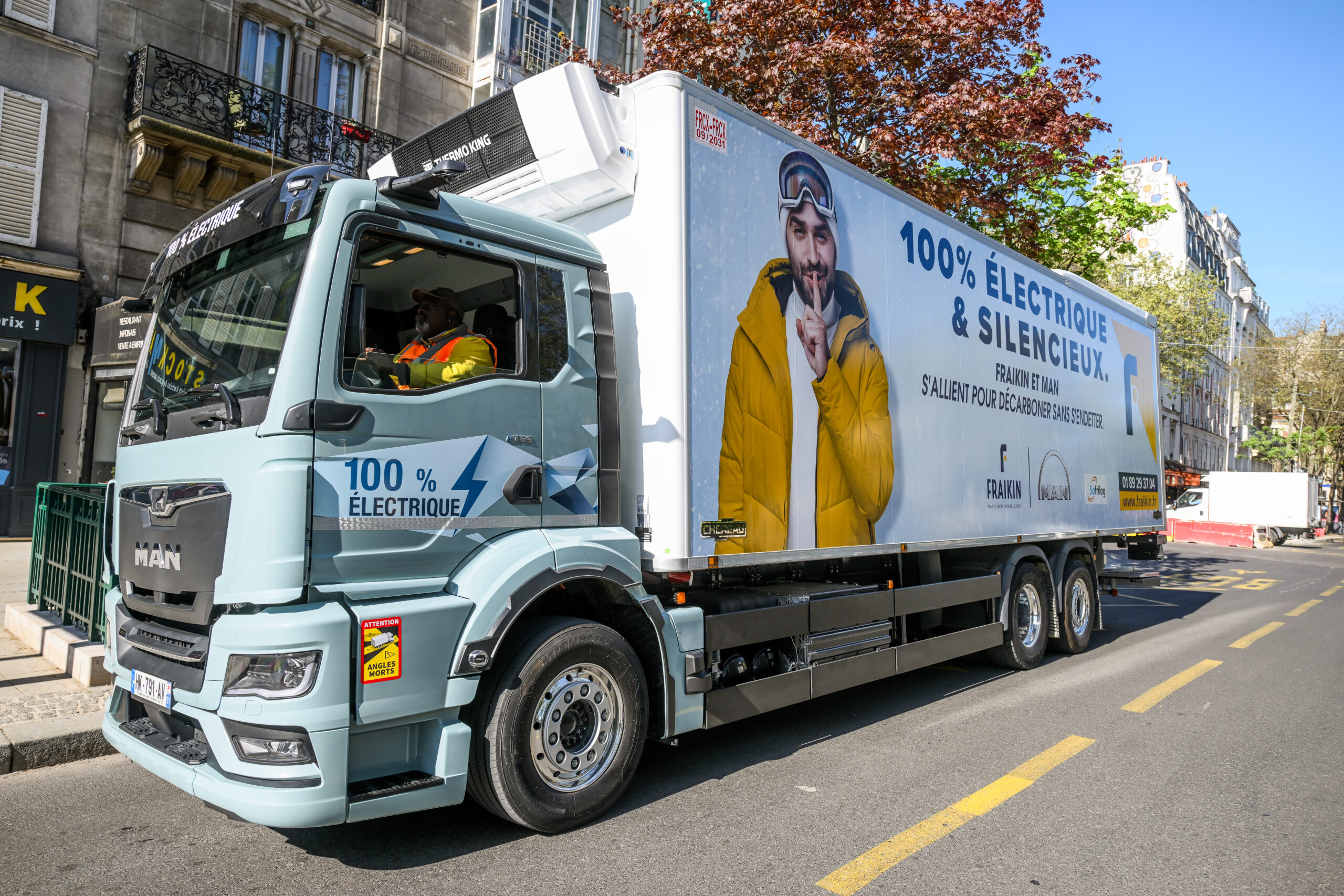 En partenariat avec Fraikin, spécialiste de la location de véhicules industriels, et SOFRILOG, expert de la logistique sous température contrôlée, MAN Truck & Bus France déploie en conditions réelles un camion électrique MAN eTGS équipé d’une carrosserie frigorifique CHEREAU.